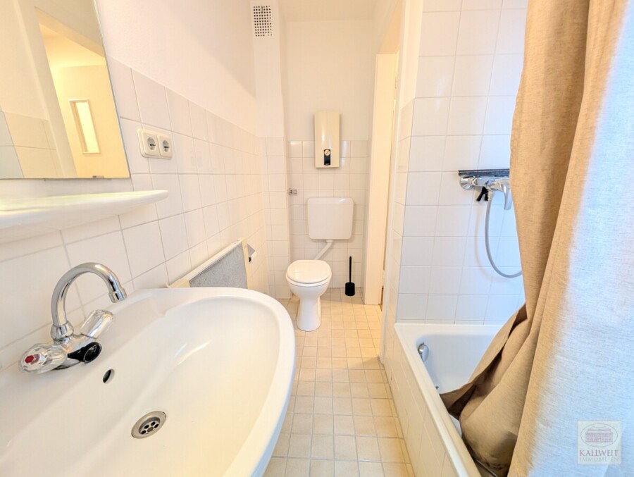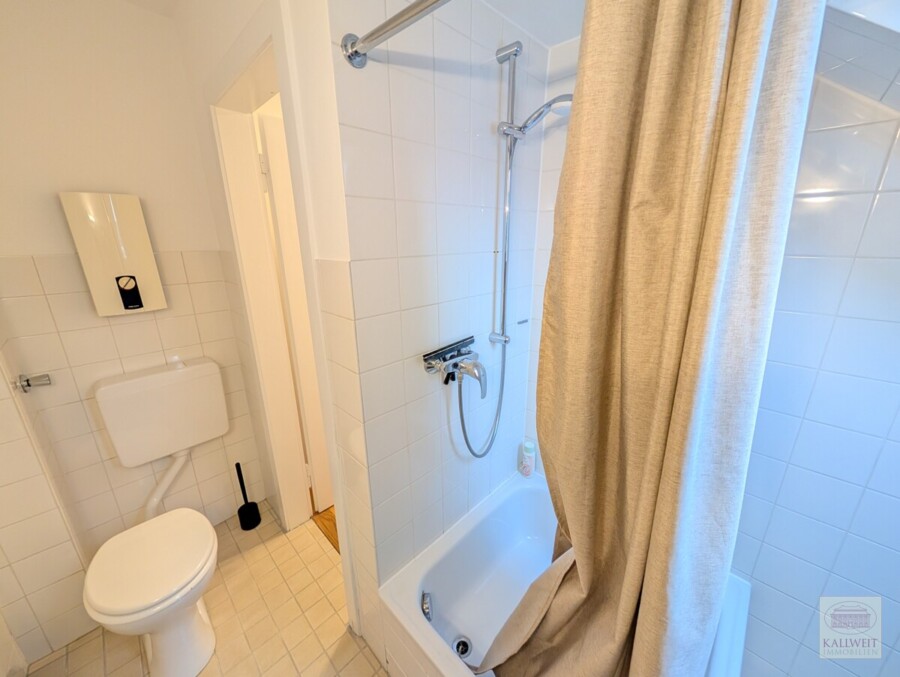 Der Waschmaschinenanschluss befindet sich im Bad.