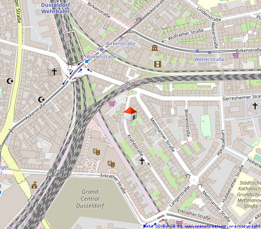 In unmittelbarer Nähe befinden sich zahlreiche Bus- und Straßenbahn-Haltestellen in Richtung Ratingen, Gerresheim, Stadtmitte, Altstadt und in Richtung Hauptbahnhof. Die Haltestelle "Elisabethkirche" und der Zugang zum S-Bahnhof "Wehrhahn" sind nur 100m entfernt.