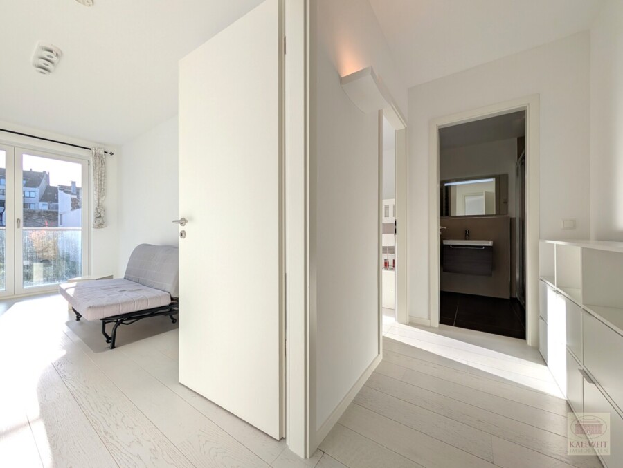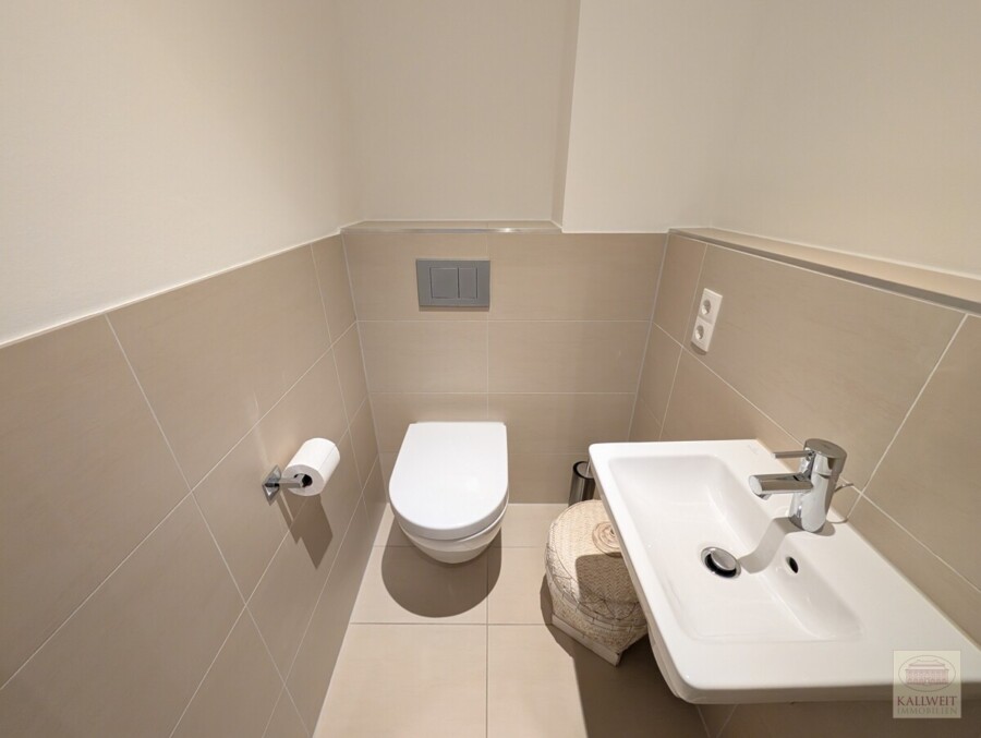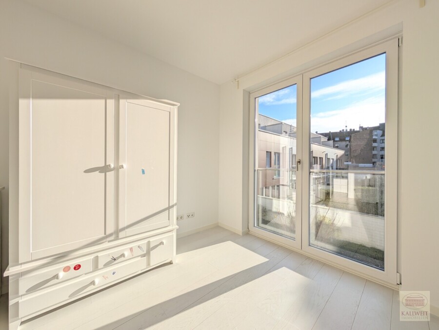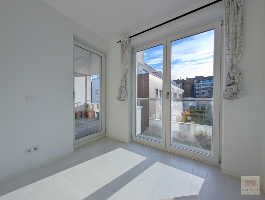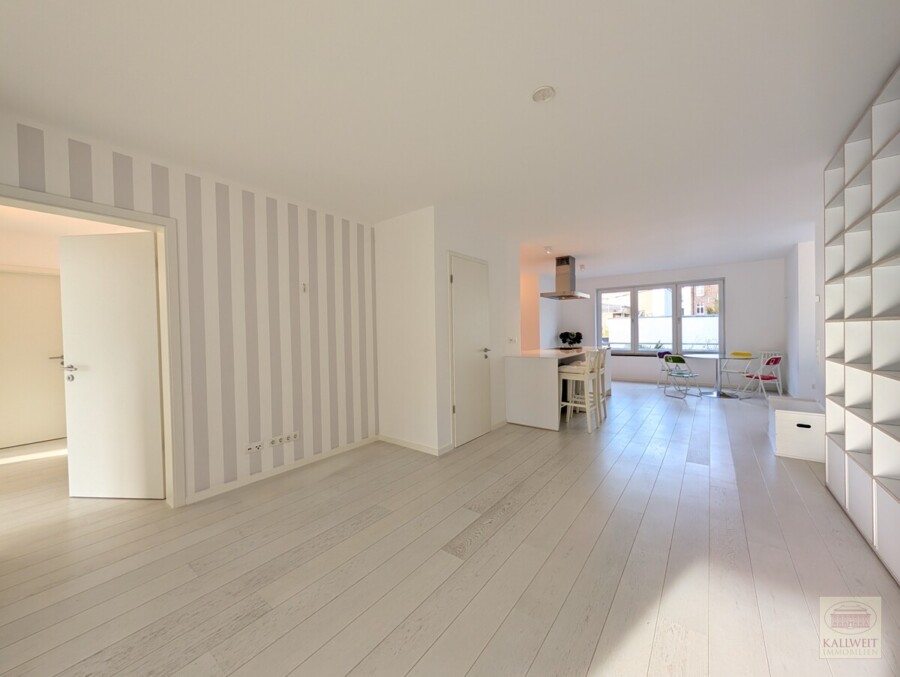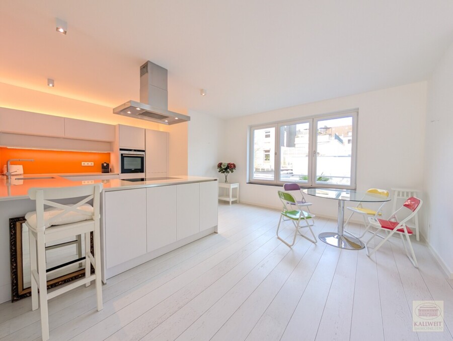 Highlight der Wohnung ist die hochwertig und schnörkellos gestaltete Einbauküche. Es stehen den Bewohnern eine Vielzahl von Einbaugeräten und maximaler Stauraum zur Verfügung. Neben der Küche befindet sich zusätzlich ein Hauswirtschaftsraum.