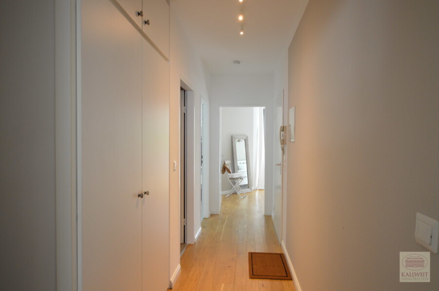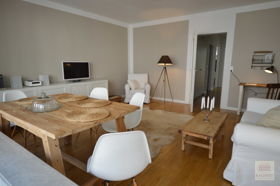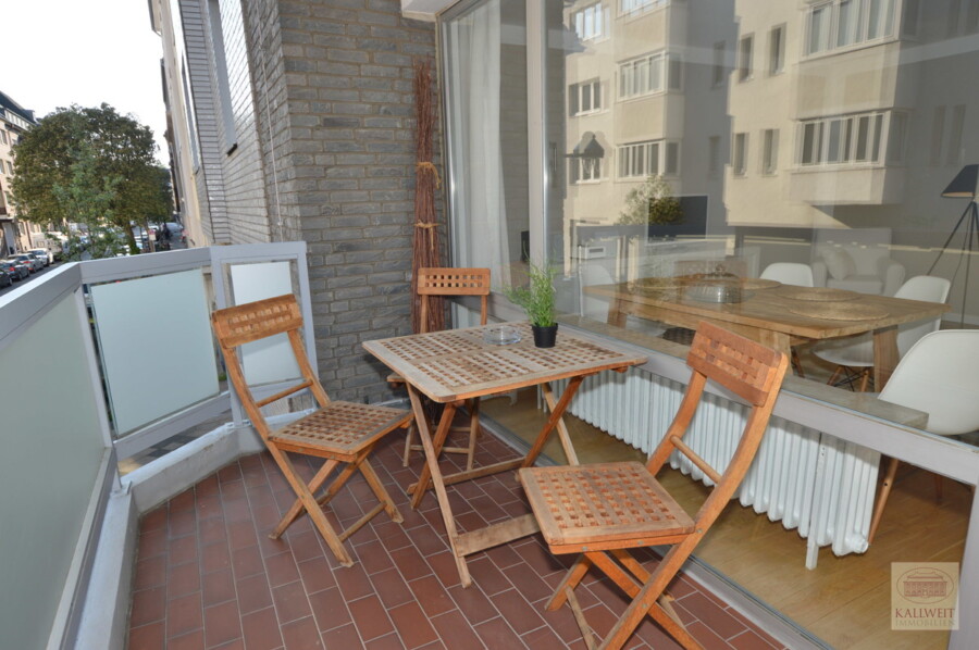 Aufteilung: Zentrale Diele mit Zugang zu allen Wohnräumen. Auf der Südseite des Hauses befindet sich das großzügige Wohnzimmer mit Balkon. Das Schlafzimmer verfügt über einen zweiten Balkon und liegt sehr ruhig zum grünen Hinterhofgarten. Das hell geflieste Badezimmer mit Wanne ist innenliegend. Die Küche befindet sich ebenfalls zur Seydlitzstraße gelegen und ist Mit Spülmaschine und Waschtrockner ausgestattet.. Zur Ausstattung: Die gesamte Wohnung wurde aufwendig renoviert und mit einem charmanten Holzdielenboden versehen. Alle Wohnräume haben ein einheitliches Design-Konzept erhalten und wurden in einen modernen Landhaus-Stil versetzt: Antike Stücke mit Design-Klassikern wurden gekonnt in Szene gesetzt.