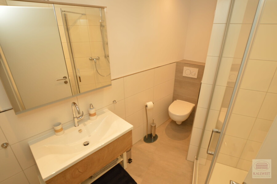 Ausstattung: Glattverputzte Wände, modernes Tageslichtbad mit toller Glasdusche, weiße Einbauküche mit bodentiefem Fenster und Zugang zum Balkon. Toller Wohnraum mit verglasten Erker; das Schlafzimmer ist mit vielen charmanten Details ausgestattet.